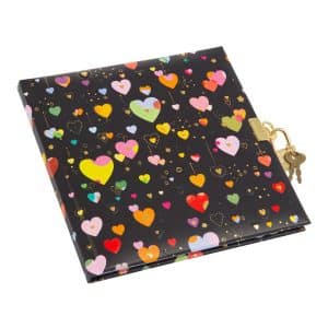 Maak kennis met het prachtige Heart Dark dagboek, een perfecte metgezel voor al je gedachten en geheimen. Dit unieke dagboek, ontworpen door het gerenommeerde merk Turnowsky en geproduceerd door Goldbuch in onze eigen fabriek in Duitsland, straalt luxe en verfijning uit. Het stevige omslag is versierd met een levendig en kleurrijk patroon van hartjes op een elegante zwarte achtergrond, wat het dagboek een speelse maar toch stijlvolle uitstraling geeft.