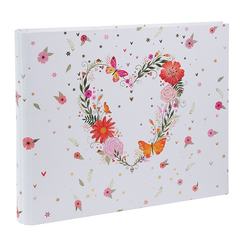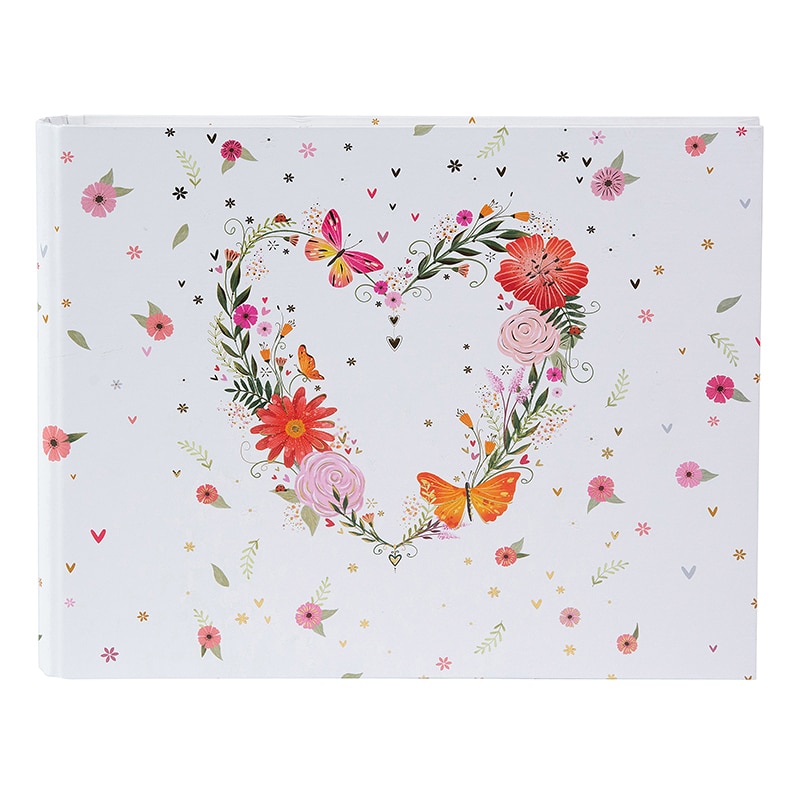 Het Foto Gastenboek Floral Embrace is een romantisch en vrolijk gastenboek voor jullie mooiste momenten. De witte kaft is versierd met een sierlijk bloemenhart vol zachte kleuren, vlinders en kleine details. Perfect voor een bruiloft, babyshower, jubileum of een andere gelegenheid waarbij je herinneringen wilt bewaren.