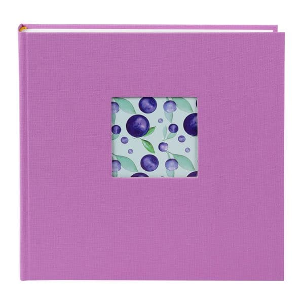Het Fotoalbum Bella Vista in lavendel valt op door zijn zachte en evenwichtige uitstraling. De linnen kaft heeft een lichte paarstint die rust uitstraalt en prettig aanvoelt. Het album oogt verzorgd en tijdloos, zonder opvallende prints. In het midden van de kaft bevindt zich een vierkant fotovenster waarin je zelf een afbeelding kunt plaatsen. Zo maak je het album herkenbaar en persoonlijk.