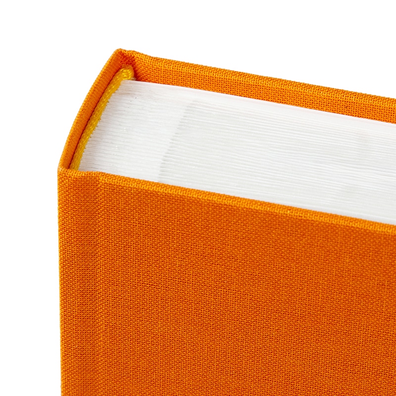 Het Fotoalbum Bella Vista in zon oranje met wit brengt direct warmte en energie. De linnen kaft heeft een krachtige oranje tint die het album een vrolijke en moderne uitstraling geeft. In het midden van de kaft zit een uitsparing waarin je een eigen foto kunt plaatsen. Zo maak je het album persoonlijk nog voordat je het opent.