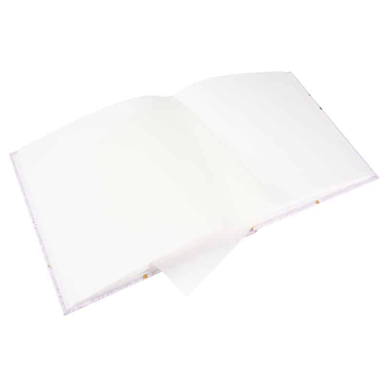 Binnenin vind je 60 pagina’s met pergamijn beschermvellen, zodat foto’s mooi blijven tijdens het bladeren. Met het royale formaat 30×31 cm is er veel ruimte om je verhaal uitgebreid vast te leggen. Het album is boekgebonden en gemaakt in Duitsland voor een stevige, duurzame kwaliteit.