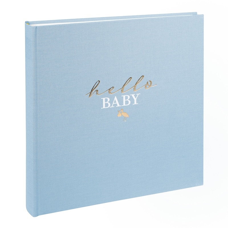 Het Fotoalbum Hello Baby in lichtblauw is een stijlvol, boekgebonden album om alle eerste herinneringen van je kleintje een vaste plek te geven. De linnen kaft geeft het album een luxe, rustige uitstraling en voelt stevig aan. Op de cover staan de woorden Hello Baby met een lieve ooievaarillustratie, waardoor het geheel warmte en tederheid uitstraalt. Ideaal voor foto’s van de geboorte, de kraamtijd en alle mijlpalen in het eerste jaar.