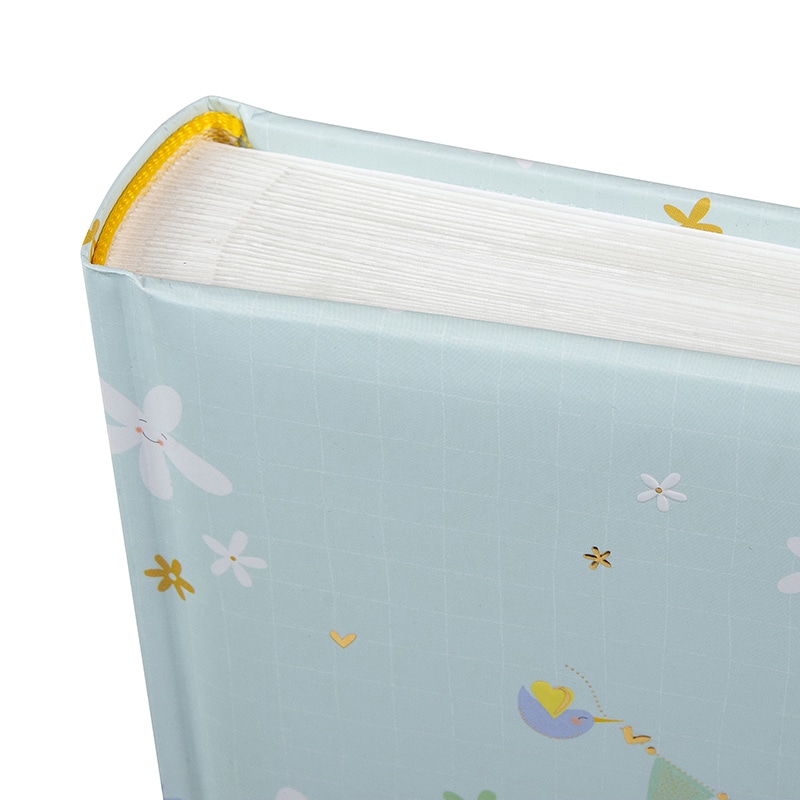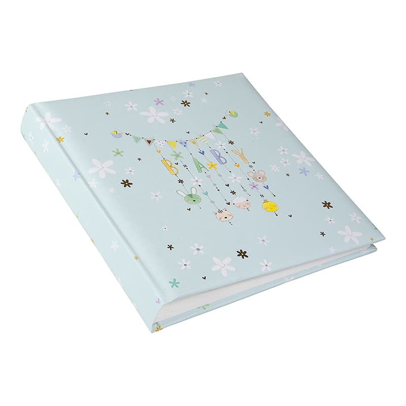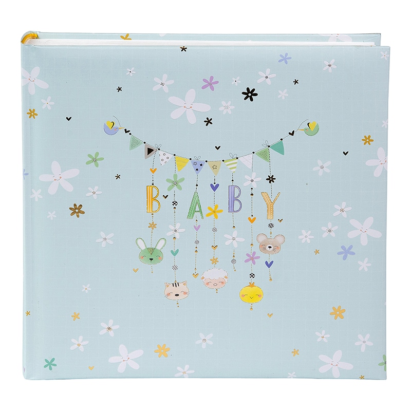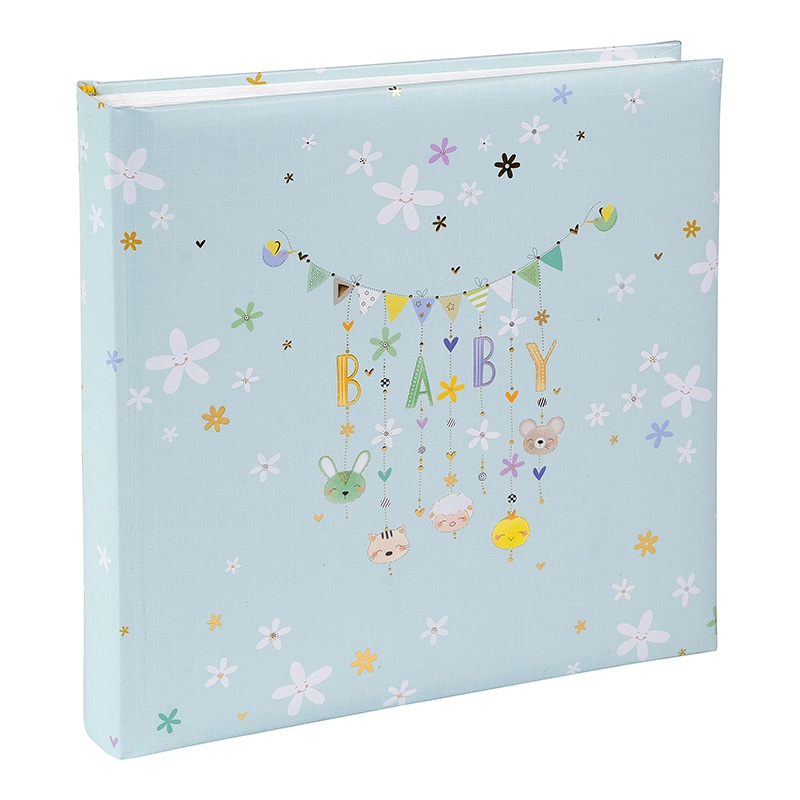 Het Fotoalbum Lullaby Line Boy heeft een zacht en dromerig design van House of Turnowsky. De lichtblauwe kaft is versierd met kleine bloemetjes en een lieve slinger met de letters BABY. Aan de slinger hangen schattige diertjes en figuurtjes die zorgen voor een rustige en warme uitstraling. Het ontwerp voelt vriendelijk en speels aan en is perfect voor de eerste herinneringen.