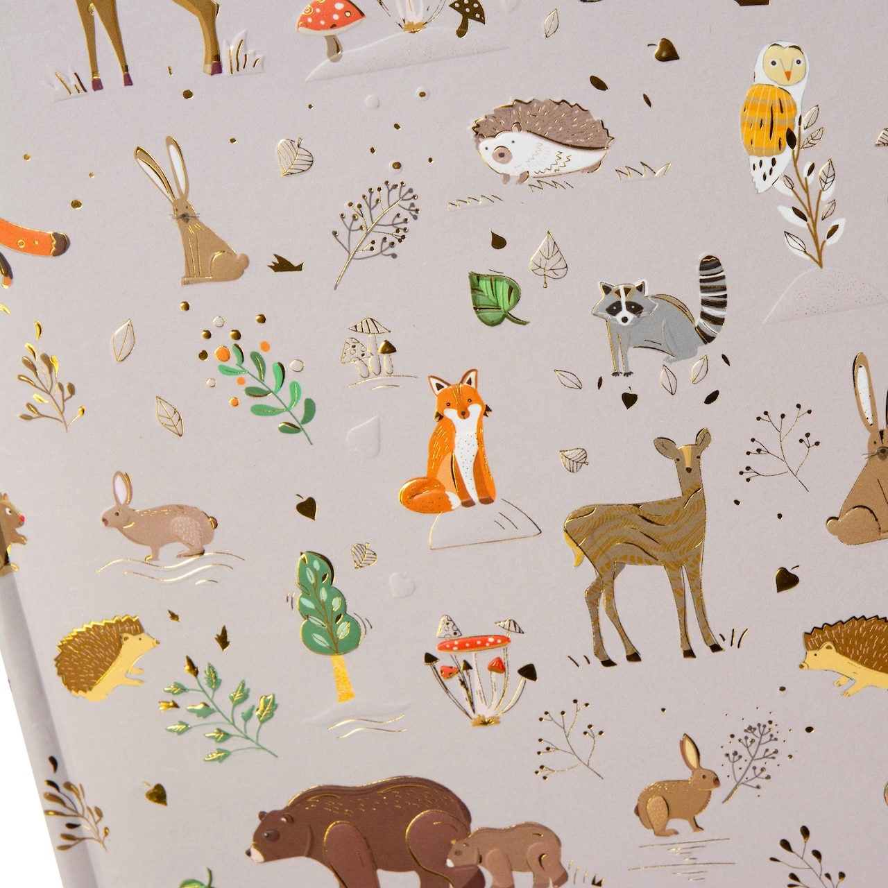 De betoverende hardcover is versierd met een sfeervol bosontwerp met vosjes, herten, wasberen, uilen en andere bosdieren, wat het album een warme en uitnodigende uitstraling geeft. De aardeachtige bruintinten maken het een stijlvol en tijdloos bewaarboek, ideaal voor natuurliefhebbers of als een bijzonder cadeau voor een speciale gelegenheid.