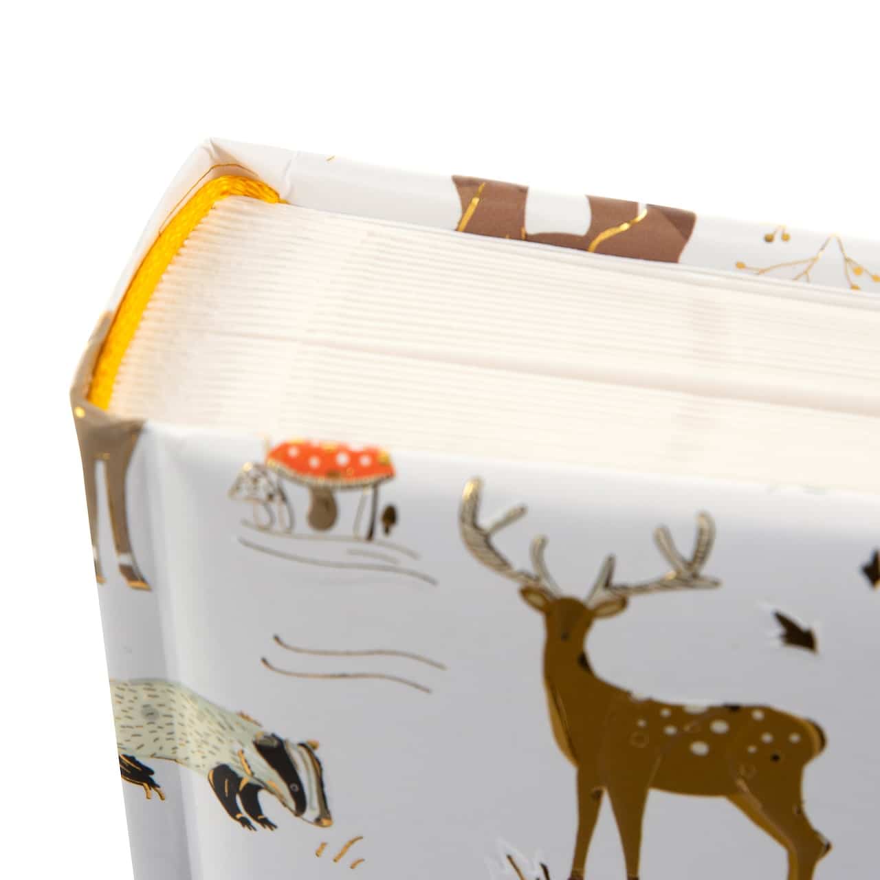 Het fotoalbum Woodland Charm Wit in een vierkant formaat van 25×25 cm is de ideale manier om je mooiste herinneringen te bewaren. Met een betoverend ontwerp geïnspireerd door het bos, brengt dit album een warme en nostalgische sfeer. De hardcover is versierd met prachtig geïllustreerde bosdieren, zoals vossen, herten, wasberen, eekhoorns en egels, wat zorgt voor een speelse en charmante uitstraling.