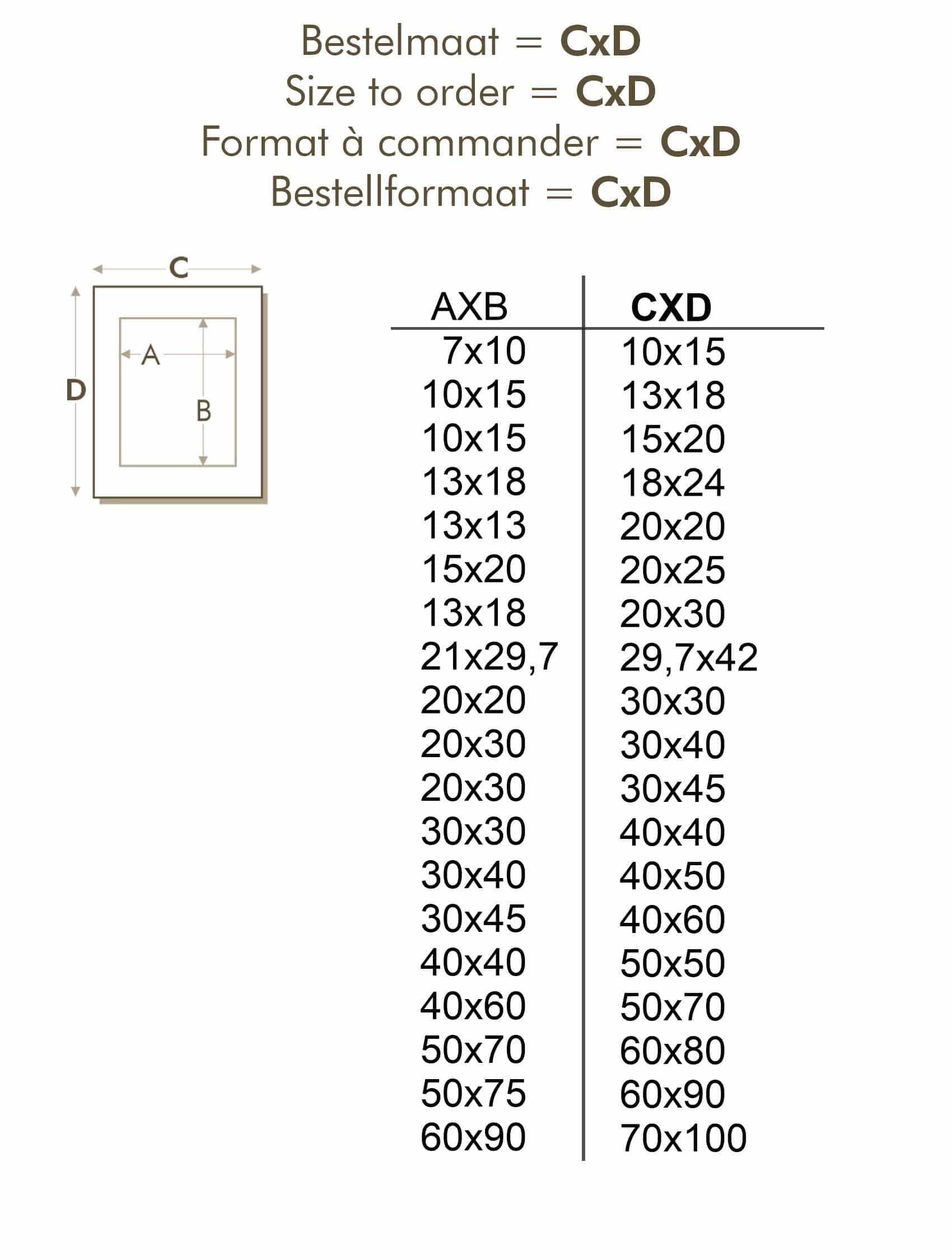 Glasmaat/bestelmaat: 29.7×42 cm – (binnenmaat passe-partout: 21×29.7cm)
