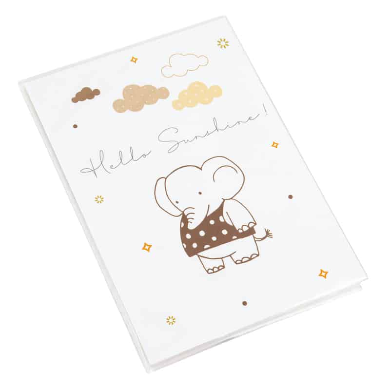 Het charmante ontwerp van de kaft is een echte blikvanger. Een lieflijke olifant siert de voorzijde, vergezeld door de hartverwarmende tekst ‘Hello Sunshine’. Deze kaft doet niet alleen dienst als een vrolijke noot, maar biedt ook stevige bescherming voor je foto’s. Zo blijven je herinneringen veilig en in perfecte staat.