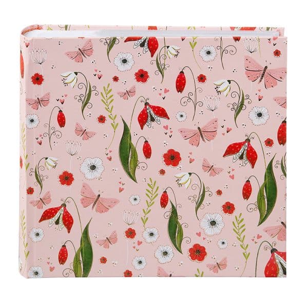 Ontdek de charme van het Secret Garden insteekalbum. De roze kaft is versierd met lieflijke bloemen, vlinders en kleine hartjes in zachte tinten van rood, wit en groen. Het speelse ontwerp brengt direct een vrolijke en warme sfeer, perfect om je mooiste herinneringen in te bewaren.