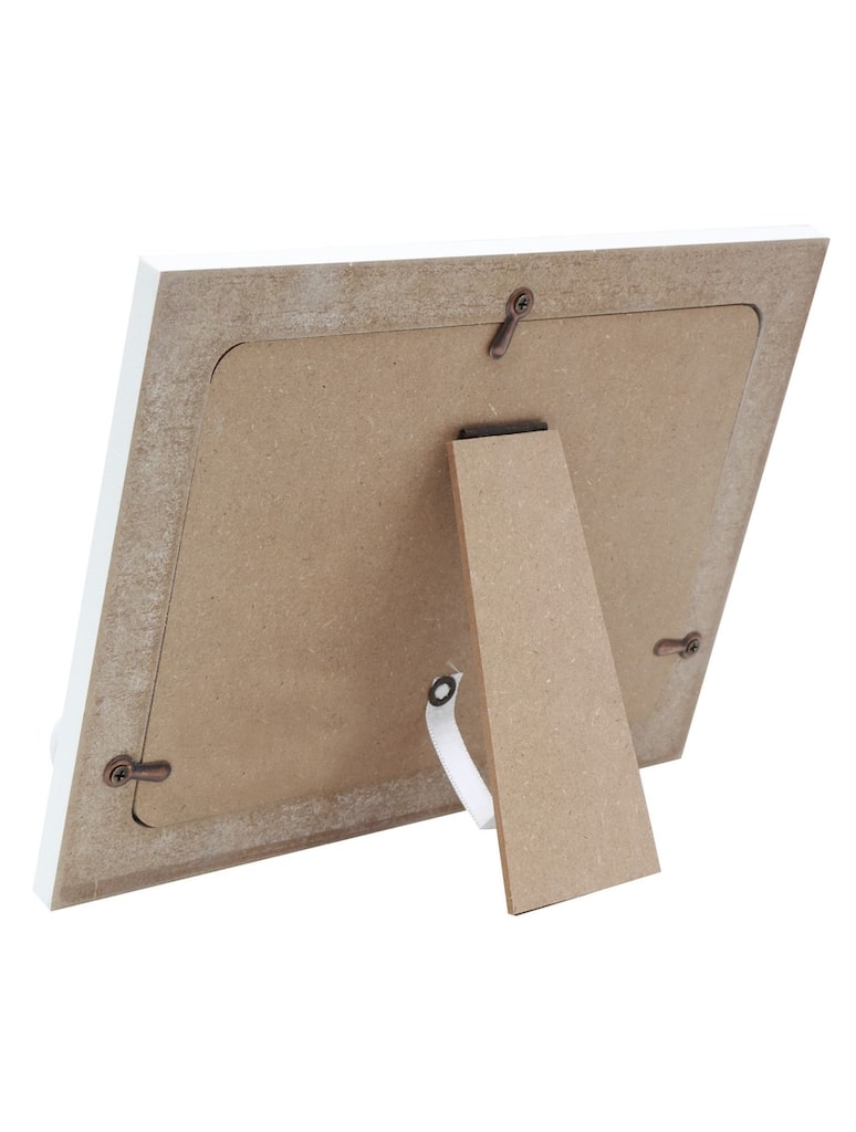 Deze fotolijst is geschikt voor foto’s in het formaat 13×18 cm of 15×20 cm. Dankzij de stevige achterzijde met standaard is de lijst eenvoudig neer te zetten op een kastje, plank of nachtkastje. De witte afwerking zorgt voor een rustige uitstraling die past in vrijwel elk interieur, van modern tot Scandinavisch.