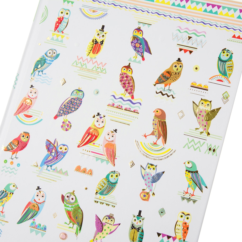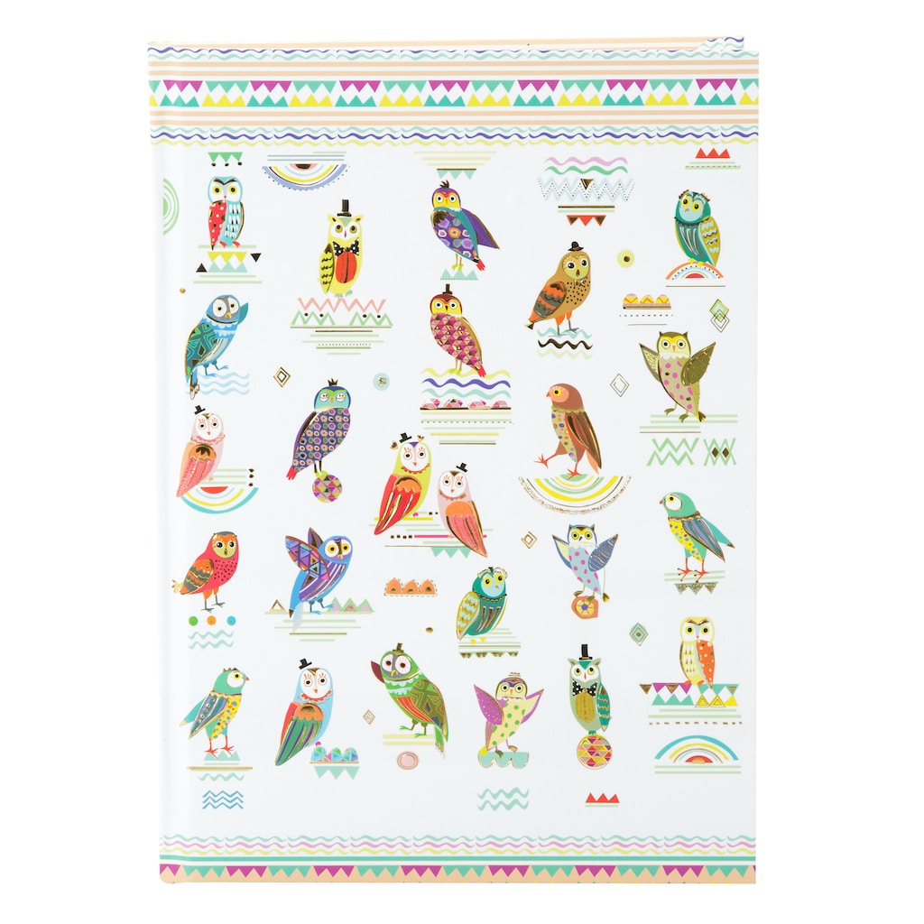 Het Notitieboek A5 Owls is een speels en kleurrijk ontwerp van House of Turnowsky, vervaardigd met hoogwaardige kwaliteit door Goldbuch. De kaft is versierd met een betoverende verzameling uilen, elk met unieke illustraties en fijne patronen in levendige kleuren. De zachte witte achtergrond met geometrische accenten in pastel- en felle tinten geeft dit notitieboek een artistieke en vrolijke uitstraling.