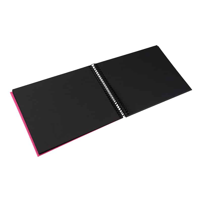 De zwarte spiraalbinding sluit mooi aan bij de fuchsiakleurige kaft en geeft het album een strak karakter. Dankzij de stevige zwarte spiraalbinding blijft het album goed open liggen, wat het inplakken en bekijken van foto’s extra comfortabel maakt.