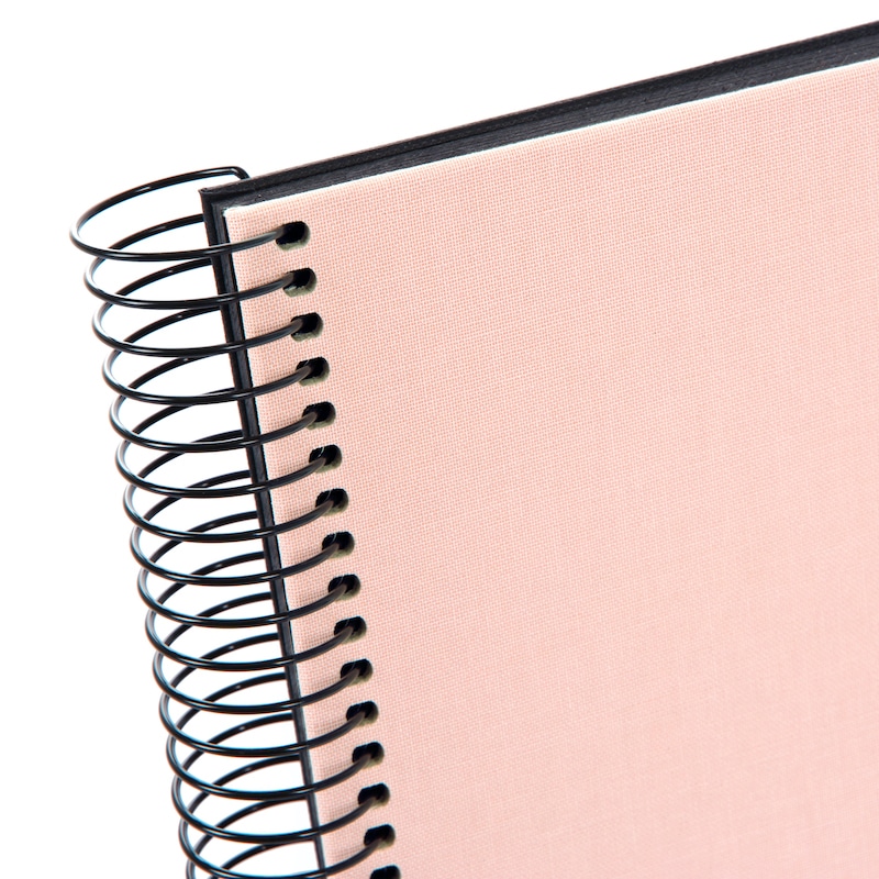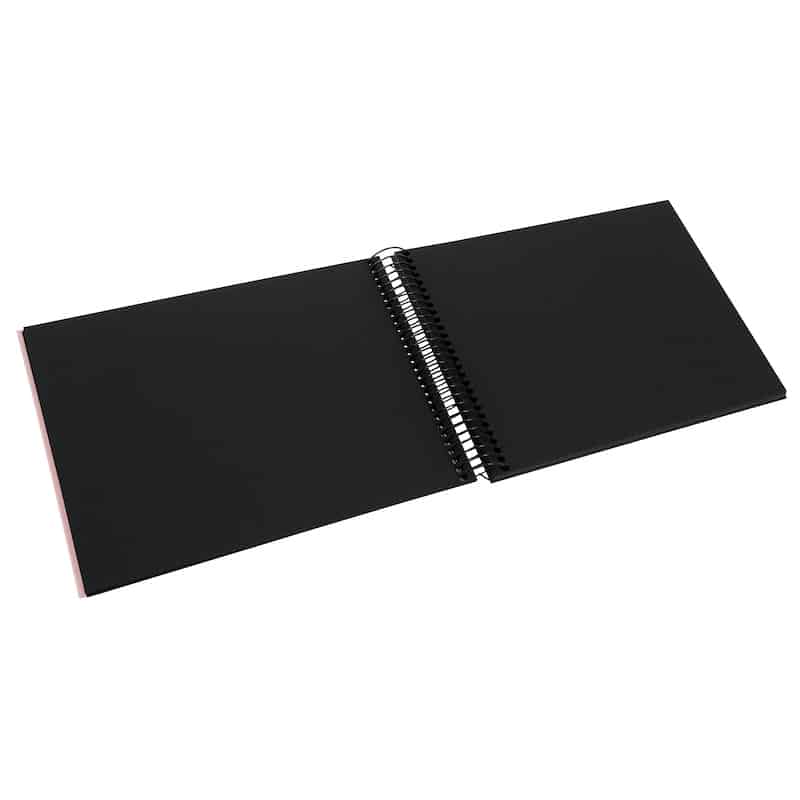 Het Bella Vista spiraalalbum in roze krijgt een verrassend chique uitstraling door de combinatie met zwarte pagina’s. De linnen kaft voelt zacht en luxe aan, terwijl de donkere binnenkant je foto’s extra laat spreken. Mooi voor romantische momenten, feestfoto’s of een album dat net wat specialer mag zijn.