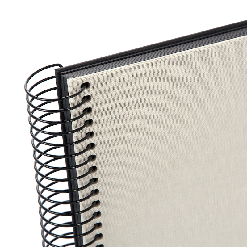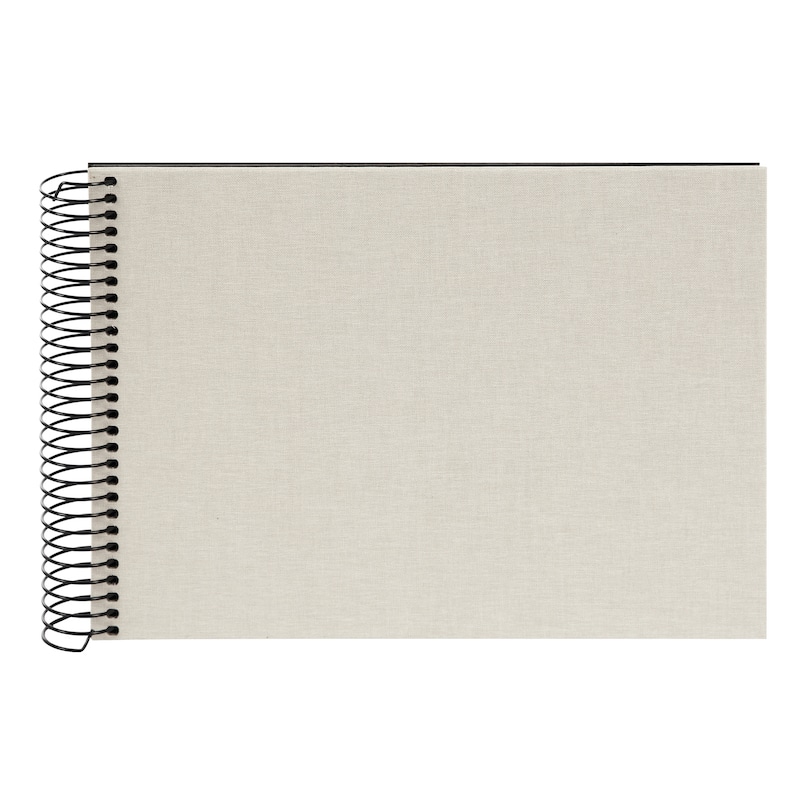 Het Bella Vista spiraalalbum in zandgrijs is een rustige, neutrale keuze met een moderne uitstraling. De kleur is tijdloos en past bij elk thema, van familie en reizen tot een jaaroverzicht. De linnen kaft geeft een stevige, luxe afwerking.