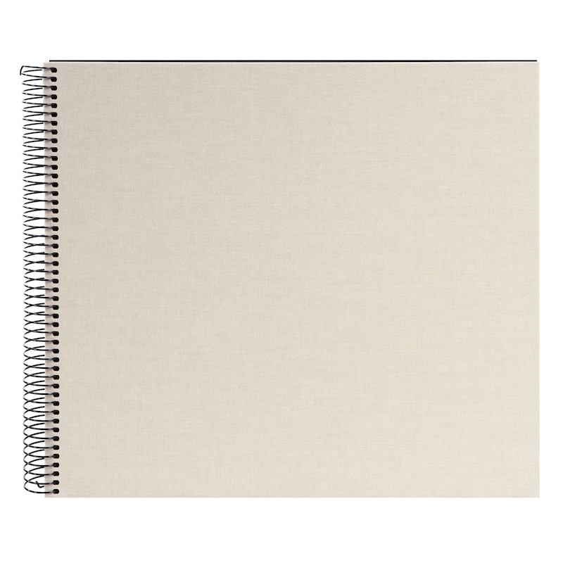 De linnen kaft geeft structuur en een natuurlijke uitstraling. De zwarte spiraalbinding houdt alles stevig bij elkaar en maakt het album fijn om plat neer te leggen tijdens het vullen.