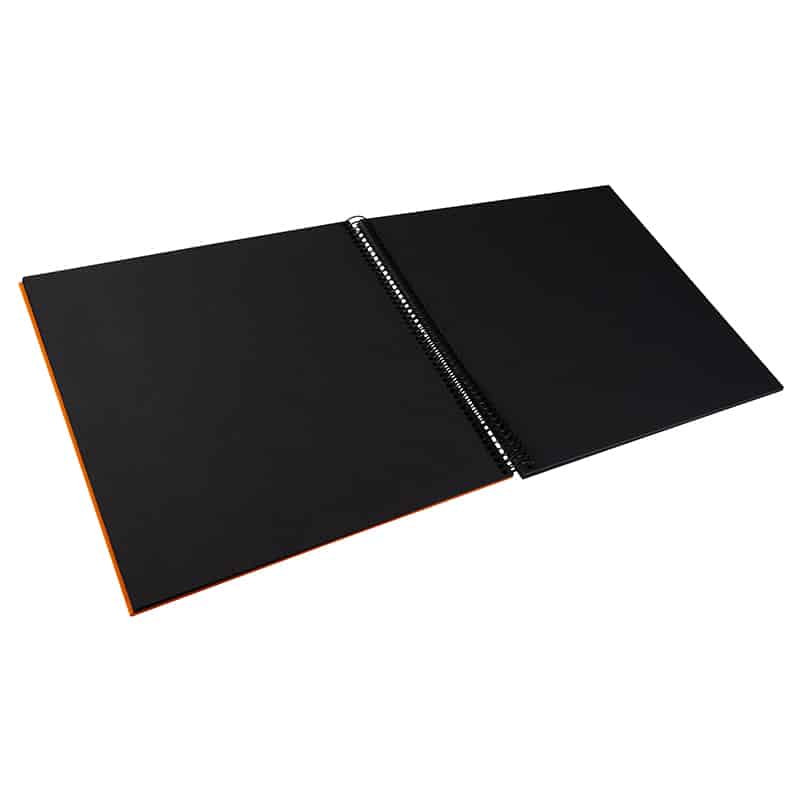 De zwarte spiraalbinding vormt een krachtig contrast met de oranje kaft en maakt het album prettig in gebruik. Het album blijft stabiel open liggen, waardoor je comfortabel foto’s kunt inplakken en bekijken, ook bij grotere pagina’s.